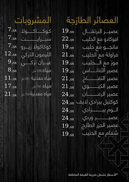 منيو مطعم وكافيه بيزاده